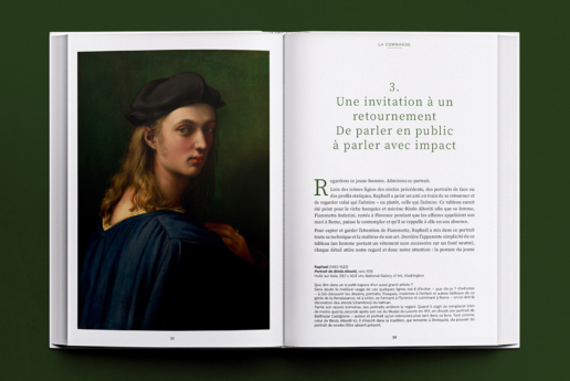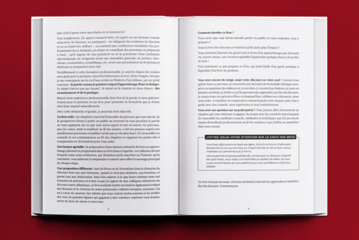 Une de mes plus belle rencontre de l’année 2023. Isabelle m’a contacté car elle cherchait à réaliser un livre. Animée par l’art du discours, elle en a fait son métier et souhaite partager son savoir avec plus de personnes. Nous avons tout de suite senti que nous partagions les mêmes valeurs et la même vision du travail bien fait. Le projet a été réalisé avec une harmonie assez hors du commun, beaucoup de respect et de bienveillance. Le texte d’Isabelle m’a scotché et j’ai vraiment eu envie que la mise en page reflète la qualité rédactionnelle. Je voulais qu’en un clin d’œil, on comprenne que ce dont on va parler peut être un réel game changer dans la vie de toute personne se procurant ce livre !